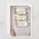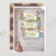 Denna söta "det var en gång" flicka baby shower inbjudan har en grå bok med välklädda djur som en katt, räv, anka, tvättbjörn, mus och hund. Baksidan har en burgunderfärgad bakgrund med blommönster/rosmönster. Anpassa den efter dina behov.