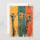 Diese Vintage Drei Giraffenköpfe auf gelb, grün und rotem Vintage-Hintergrund im afrikanischen Stil vereint die majestätische Schönheit der Giraffen mit lebendigen Farben und kulturellen Akzenten. Die kraftvollen Köpfe der Giraffen heben sich vor einem Hintergrund in den typischen afrikanischen Farben Gelb, Grün und Rot ab, die die afrikanische Kultur und Natur widerspiegeln. Der afrikanische Einfluss im Design sorgt für eine exotische und künstlerische Note, die das Flair der afrikanischen Savanne einfängt. Diese Postkarte ist perfekt für Naturliebhaber, Sammler von afrikanischer Kunst oder alle, die ein Stück afrikanisches Erbe in ihr Zuhause bringen möchten. Ein einzigartiges Souvenir oder Geschenk, das die wilde Schönheit Afrikas feiert.