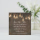 "Vintage Edison-ljus Tegel Industriell Lagerlokal Spara datum-anmälan." Meddela din kommande vigsel med temat för din fest - en perfekt blandning av rustik urban chic och romantisk belysning. Bakgrunden är grov, sliten, åldrad och nött antik tegel i djupa rika toner med hängande glödande Edison-ljus. Upphovsrätt, Audrey Jeanne Roberts, alla rättigheter förbehållna.