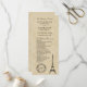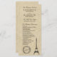 De här programmallskorten är perfekt för alla par som planerar en romantisk vintage bröllop firande. Utformningen har en antika bakgrunden stil med svart bläck Eiffel torn och poststämpel frimärke. Den enkla designen kan vara personlig till kostym för din speciella händelse och kommer att vara perfektens serviceordning för alla vintagar som kallas party, inklusive: möhippor, förlovningar, möhippor, födelsedagsfester och mycket, mycket mer.