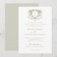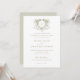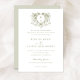 Vintage Elegant Leafy Olive Vapensköld bröllopsinbjudan. Traditionell inbjudan till språkbröllop. Bröllopsinbjudan till elegant Script Calligraphy Wedding. Vintage Hand plockade Antique Grönt Ram med Blommigt Information