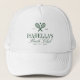 En modern men vintageinspirerad mössa för möhippa i en rik mörkgrön palett, som frammanar den tidlösa elegansen hos gammaldags lyx på countryklubbar. Framsidan har korsade tennisracketar och en boll, infattade med förfinad detaljrikedom, och orden "Bach Club" skrivna i flytande elegant skrivstil — ett kvick napp till både sportig sofistikation och festlig charm. Designen balanserar klassisk countryklubb-aestetik med en chic, modern twist, perfekt för den blivande bruden som älskar förfinad fritid. Perfekt för "Sista svängningen före ringen"-firande — kombinerar lyx, tradition och modern firande i en sammanhängande design. Fullt redigerbar.