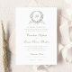 Vintage Elegant Mall för inbjudan att bjuda in Olive Löv. Traditionell inbjudan till språkbröllop. Bröllopsinbjudan till elegant Script Calligraphy Wedding. Vintage Dove Grått Oak Löv Utandning av Bröllop Monogram Vapensköld Inbjudan till