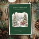 För dina varmaste julönskningar till vänner och familj. Vattenfärg vintage snöig vinterscen med röd rödhake. Behåll designtexten 'God Jul och Gott Nytt År' som den är eller redigera. Lägg till ditt eget namn/familjenamn på framsidan och dina egna personliga hälsningar på baksidan. Julkortet är i en lyxig djupgrön färg.