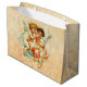 En stor presentväska med ett par söta små änglar körubim med mjukt vitt vingar och klätt i diaphanösa kläder. En viskar i andra örat. Ställ in på en gammaldags vintage tittar bakgrund.
