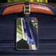 Retro European Travel Advertisations - Gult, Grönt Vår Tones Railroad Travel Ad - Tåg, Stone Bridge och Historical Village Illustration Painting