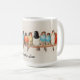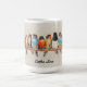 Perch of bird sitta i rad av Hector Giacomelli. Fåglar omger mugg med ord "Kaffelinje".