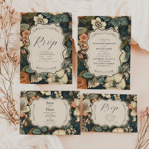 Inför bröllop med tidlös elegans med Vintagen Fall Flowers Bröllop-inbjudan. Med en djup, rik marin bakgrund och med en kraftig fallande blommigt i varma hösthuvar fångar denna inbjudan på ett vackert sätt romantik och högsäsongens charm. De känsliga tonerna i blommigten, i kombination med vintage-inspirerad typografi, skapar ett klassiskt och förfinat utseende, perfekt för en höst bröllop. Ange tonen för din bröllopsdag med inbjudan till Vintage Fall Flowers Wedding, där tidlös elegans möter skönheten från hösten.