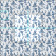 En färglös anpassning av en engelsk John Munn-toile de jouy Textil mönster ca 1770-tal med ett klassiskt monument över Shakespeare, fontän, fåglar och exotiska blommigtar. Blå mot vit bakgrund.