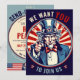 Den här roligt vintagen är en patriotisk röd, vit och blå morbror Sam-tecknad med texten "Vi vill att du... går med oss" och oroliga stjärnor på framsidan, och US flagga accent, "för en utsändning av party till heder för vår snart tillkommande amerikanska Airman (Luft Force), Guardian (Space Force), Soldat, Soldat, (Armé), Marine (Marines), Sailor (flottan) eller Kusten Guardsman (Kusten Guard) och party på baksidan är ett minnesvärt sätt för inbjudan vänner och familj att säga "se dig senare" till din älskade som är på väg till grundläggande tränings- eller upploppsläger! ♥ Lovande designad av en Luft Force Mamma ♥ inbjudningsmall kan lätt vara personlig för vilken gren som helst av militärtjänsten! Se matchande dekorationer i party och mer i samlingen fullt nedan. **Vår son är nyligen chefsveterinär i USA F-16, så även jag hade svårt att hitta lämpliga inbjudningar, dekorationer i party, uppmuntringskort vid basredskap/personlig i studenten och mycket mer! Alla mina planer, från att åka bort från party - till träningen processaa (och otroliga studenten-veckan!!), genom aktiv tjänst och komma hem hit i min Zazzle-storefront, skapades till heder för min son och all modig militär personal och alla våra familjer. Se fullt-samlingen genom att klicka på länken "by FigLilyCo-Military" (blått av FigLilyCo-militär) i övre högerna av skärm, klicka på min butik namn under fotot för att hitta vad du är tittar för! **Anpassad design och ytterligare produktdesignbegäranden välkomnas alltid - klicka på knappen "message" eller e-post direct (med ett snabbt svar): contact@figandlilyco.com. ♥ från denna stolta militärfamilj till er och er - vi sänder våra uppriktiga välsignelser från kärlek och ett stort tack för den tjänst, det mod och de uppoffringar som din amerikanska tjänstgörande medlem ♥ har gjort