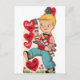 Det här vykortet är en illustration av en pojke med kritor, ett hjärta och en fågel på huvudet och hjärtan som säger "färg mitt liv rosigt. Var min valentine" Photo kredit: Karen Horton, 2011. Njut av den här Vintagen Färg mitt livs Rosy Valentine-vykort!