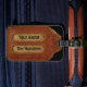 Fotografiet av en märkre för identifiering av brunt läder finns på denna märkre för bagage-id. På bagaget ser det ut som vintage, välbärgat och väl tilltaget. Anpassa och anpassa text som du vill.