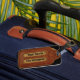 Vintage faux Åldras Leather ID Brown Bagagebricka