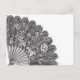 Svartvit illustration av kvinnans fläkt från 1700-talet. Den har fjädrar och blommor