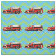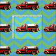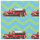 Red vintage Fire lastbil på blek grönt zigzag-bakgrund.