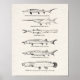 Diagram som visar vyerna för fem fiskar: störar, paddelfisk och bowfin. Anpassad från det diagram som ursprungligen publicerades 1905. Mycket trevlig, antika fiskillustration med vanlig och latinsk namn på en parkeringsbakgrund. Ram och ge som en gåva till din favoritfiskare. Namn är Shovel-nosed Sturgeon, Paddle-fish (2 vyer), Sjö Sturgeon, Common Sturgeon och Bowfin.