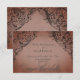 Öka ditt gotiska bröllop med en viktoriansk inspirerad spara datumkorten som exuderar tidlös elegans och mysterium. Designat för att likna en antika bok-bindning, är den här fantastiska designen ett svart och laktat filigree på en vintage med tryckt rost bakgrund, som framkallar charmen från en föråldrad era och lägger till en aning mörk romantik, perfekt för att ange tonen för ditt unika firande. Låt din kärlek-artikel utvecklas med en design som är lika oförglömlig som din dag. Skapat av Farmhouse Press.
