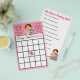 Vintage Flicka Nalle Babyduschspel. Sida ett är Baby Shower Bingo och sida två är: "Vem vet bäst om mamman?"