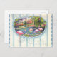 Vintage Florida Flamingos Holiday Greetings från Florida. Det kommer från ett årligt julkort från 1920-talet, eftersom det har en konst deco stil till det. Rosa flamingos på en tropisk vattenväg med handflatan träd och vatten lilies.