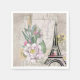 pappra party-blöjor med söt av målade blommor och vintage med en svart illustration av eiffel torn. Charming- och chic-design.