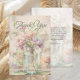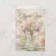 Det här bröllop-vintage-inspirerade-kortet innehåller mjuka blommigtar med vattenfärg som är kapslade i Mason burk, som ställs in mot en bakgrund med åldras linen-stil med känslig skriptinformation. På framsidan visas en fin "Tack" i klassisk grönt, medan baksidan innehåller ett hjärtligt tacksamhetsbudskap från bruden och brudgummen. Med sin blandning av rustik charm och romantisk elegans är detta kort perfekt för trädgårdsbröllop, vår och sommar-firande, eller ett par som inte har någon blommigt i kärlek.