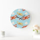 Vintage Flygplan moln Bakgrund Mönster Stor Klocka
