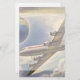 Vintagens illustration av färd och utformning av transport med Douglas DC-7, fyrmotoriga propellerflygplan. flygande värld runt. Fluffy white moln i himlar ovanför jorden.