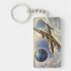 Vintagens illustration av färd och utformning av transport med Douglas DC-7, fyrmotoriga propellerflygplan. flygande värld runt. Fluffy white moln i himlar ovanför jorden.