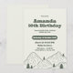 Fira ditt barns speciella dag omgiven av naturens skönhet med denna vintage fjällinspirerade födelsedagsinbjudan. Med en minimalistisk illustration av majestätiska berg och tallar i jordiga gröna toner är denna inbjudan perfekt för unga äventyrare, naturälskare eller någon som drömmer om en utomhus födelsedagsfirande.