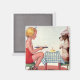 Vintage Födelsedagsfest, flicka med Pet Puppy Hund Magnet