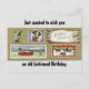 Fantastisk, gammal bild av en hund, fiske, golf, ankor och födelsedagsgratulationer på en träplanka, finns på detta födelsedags vykort. Framsidan av vykortet lyder, "Vill bara önska dig en gammaldags födelsedag". Baksidan av vykortet lyder,"Ha en fantastisk"! En bra födelsedags hälsning att skicka till en manlig vän eller familjemedlem.