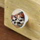 Den här keramiska knoppen har en målning av en liten byn på landsbygden i primitiv folkkonst stil. Skogen bakom de vita husen har höstskuggor av rost och orange.