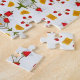 En känslig, elegant abstrakt i mitten av århundradet i modern blommigt återställer konst i skuggor av rött, gult och grönt.