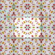 En känslig, elegant abstrakt i mitten av århundradet i modern blommigt återställer konst i skuggor av rött, gult och grönt.