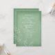 Vacker och elegant vintage ljust grönt bröllopsinbjudan med bladviner i det nedre lämnat hörnet och en toning av två intertwinenta hjärtan i mitten. Utformningen har en utskriven faux struktur för ett gammalt pappert utseende. Samma design finns i flera redon som har gjort färg-alternativ och kan anpassas till ditt eget färg-schema genom att kontakta mig på Mshake5918@yahoo.com.