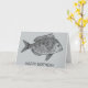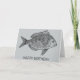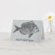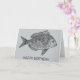 Ett födelsedagskort med vetenskaplig och detaljerad vintage svart bläck illustration av en havsfisk mot en skräddarsydd akvafblått bakgrund. Detta marina trendig skulle vara en perfekt för alla fiskentusiaster älskare eller fiskeentusiaster. hälsning kan anpassas så att du kan byta till kostym, t.ex.: Lycklig 50:e födelsedagen eller Grattisar osv.