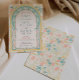 Gratulera till din speciella dag med den här eleganten Art nouveau-inspirerade bröllopsinbjudan. Den här inbjudan har en komplicerad blommigt och en sofistikerad palett med vintage färg, och anger tonen för en tidslängd och romantisk händelse.