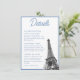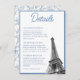Dela din evenemangsinformation med stil med dessa vintage franska Eiffeltornet Bat Mitzvah-detaljer bifogas kort. Designen har en blå toile blommönster på baksidan med ett Eiffeltornet-foto och personlig text för att dela detaljerna om ditt evenemang på framsidan. Gå in i Zazzle Design Tool för att göra ytterligare justeringar.