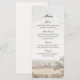 A vintage French country toile wedding menu featuring a romantic landscape illustration and soft neutral tones. Perfect for garden, rustic, château or elegant wedding receptions.