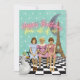 Roligt och funky födelsedag hälsning har en trio skolflickors vintage som färgade bildskärmar, ett anka med krona, Eiffel Torn, ett halvmåne måne och Grattis på födelsedagen från oss alla i rosa och gult