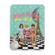 Roligt och funky förändrar konstvinjetten i en trio av skolflickors vintage tonade fotoskärning, ett anka med krona, Eiffel Torn, ett halvmånigt måne och Grattis på födelsedagen från oss alla i rosa och gult, nyans