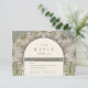 En samordnande OSA kort i djupgående grönt med Art nouveau botaniska gräns och elegant guldfärgade detaljer. Perfekt för vintage-inspirerat bröllop, det här responskortet blandar klassiskt romantik med konstnärligt smak och matchar sömlöst huvudbröllopsinbjudan för en sammanhängande svit.