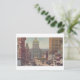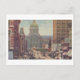 Reproduktion av ett gammalt vykort som visar Market Street i centrala Indianapolis, Indiana, med statens regeringsbyggnad i bakgrunden.