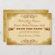 Vintage Theater Production Gay Bröllop spara datum Cards. Nedfläckadens vintage grym papper bakgrund med krämetikett och vintage som pekar på händer bilder och hjärtformade scrollsar. De fick se ut som en western teaterproduktion poster eller biljett. Enkelt anpassade, lägg bara till uppgifter om ditt eget bröllop. Varje inbjudan levereras med ett vitt kuvert.