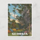 En vintage bild i en Georgienträdgård illustrerar denna vackra amerikanska stat med blommor, azaleor, gräs och mer i träd. Namn Georgia vid grund i ett teckensnitt för vintage kan redigeras eller tas bort.