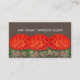 Affärskort med fetstilt blommigt.Tre groddar med röd orange står lätt mot mörkens bakgrund. Underbar för Medelhavets trädgårdsdesigners. Den kommer 100 i en förpackning. Standard visitkort storlek.