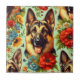 Vintage German Shepherd Blommigt Kakelplatta