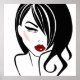 Snyggt, bakgomligt tema i svartvitt. En vacker kvinna ansikte med rött läppar och läskhår. Roligt, tro teckning.