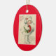 Vintage bild av en liten flicka som alla klär sig i en vit vinter med stor muff, finns på denna keramiska prydnadsföremål. Den ena sidan har en röd bakgrund och den andra sidan en grönt. Med meddelandet "A God jul" och "May all Joy that's säsononable and all want that's RIE.S.A.T.O.S." och "May all Joy that's Sädefulla, Be Perfekt Beviljas dig denna jultid." Skapar det här en älsklingsgåva till ge eller använda för att dekorera ditt eget träd!