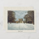 vykort med en digitalt rengjordisk och förbättrad vintage illustration av Glamis Castle, nära Forfar i Angus, Skottland av Francis Orpen Morris från 1870, bilder ett medeltida slott i snö med en lång körning fram till byggnaden, som gränsar till träd. slottet ljuger mellan Sidlaw Backe och Grampiska bergen och nämndes först i protokoll från 1034.